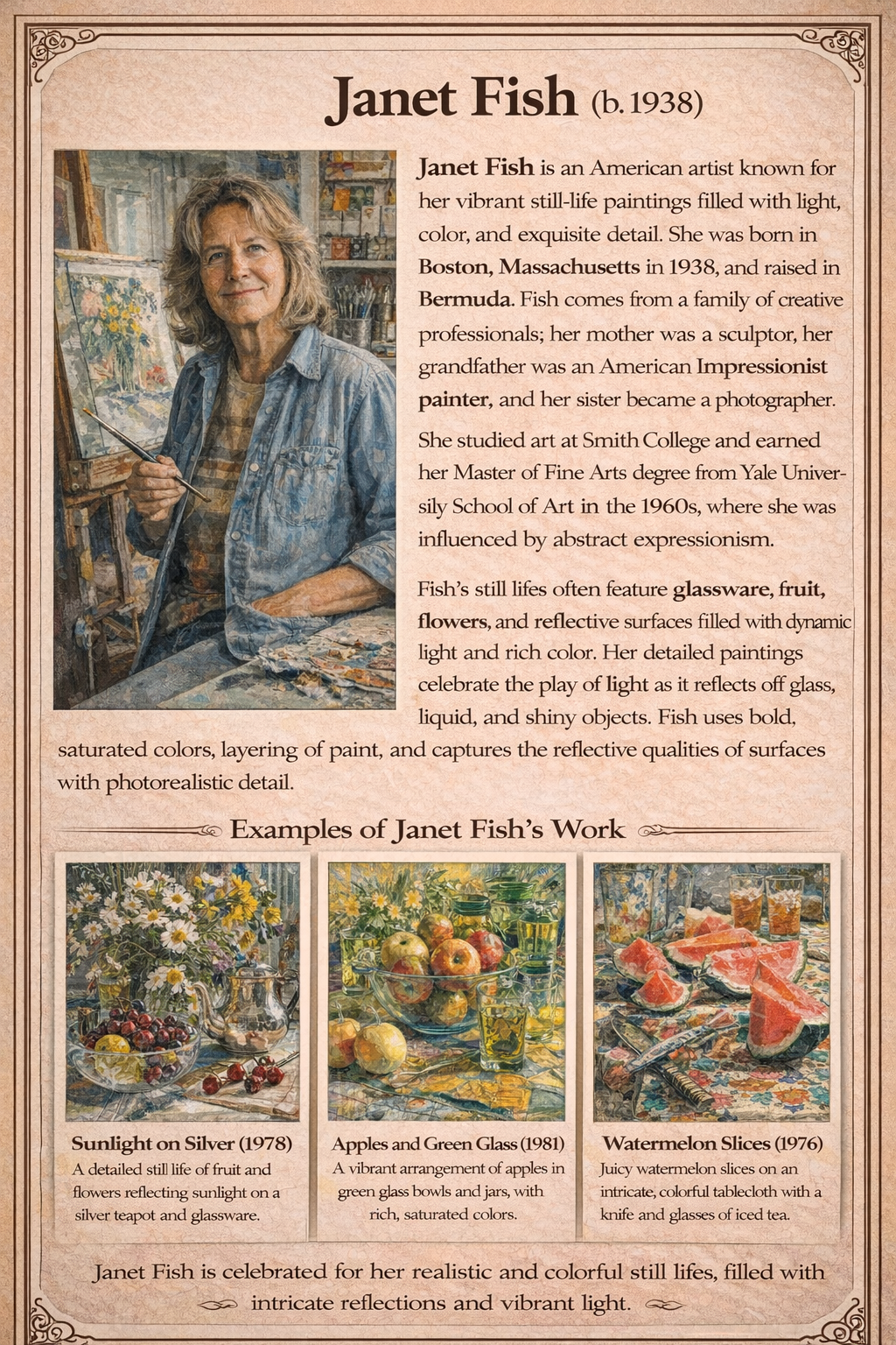 * Plan a still life composition of their favorite meal, choosing an angle that is visually dynamic.