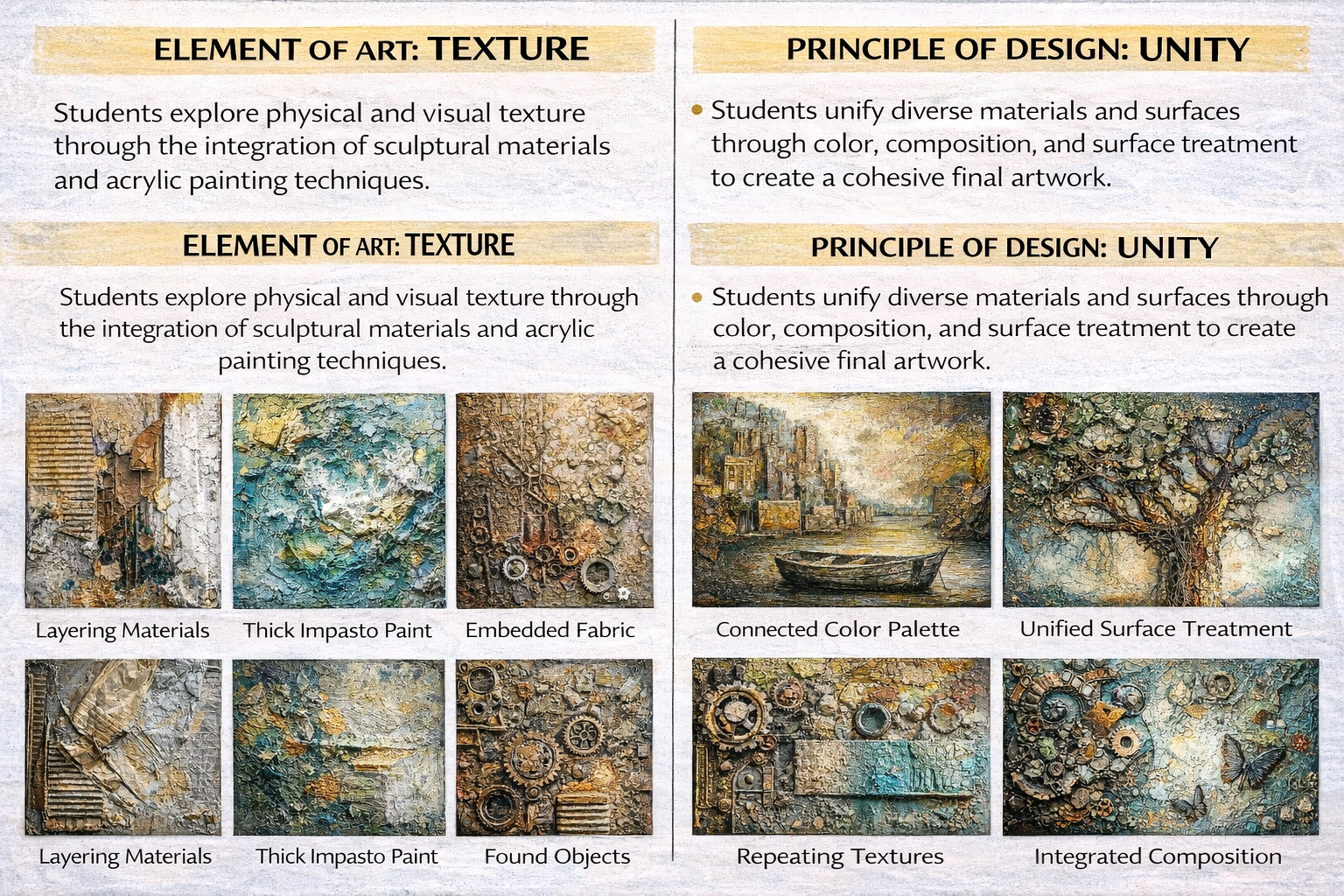 This project challenges students to thoughtfully integrate physical depth and surface variation while maintaining strong composition, craftsmanship, and conceptual intent.