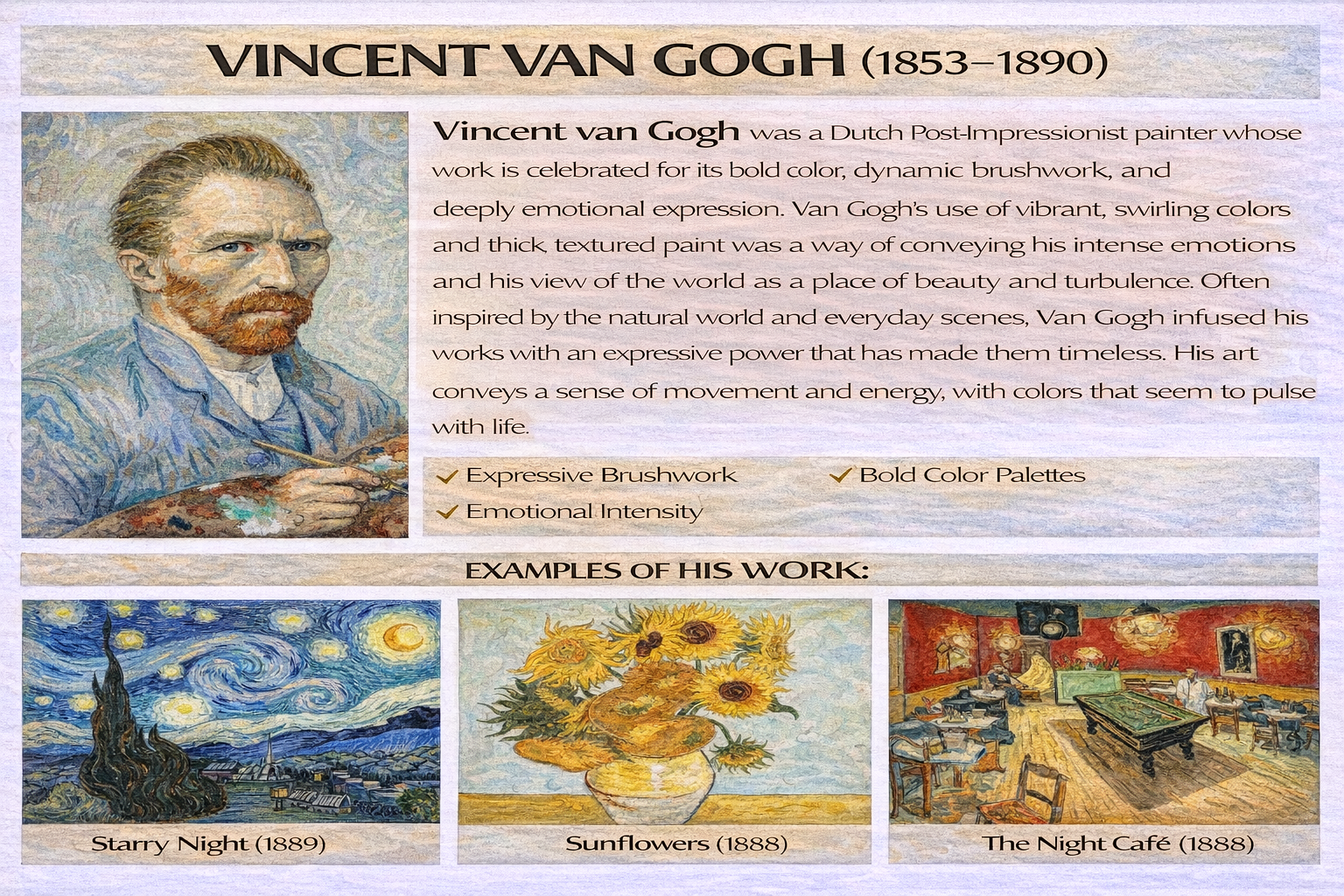 * Experiment with expressive brushwork, layering, and texture.